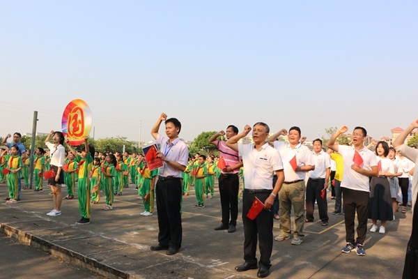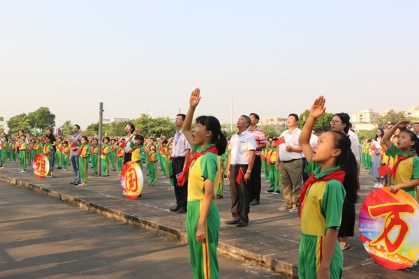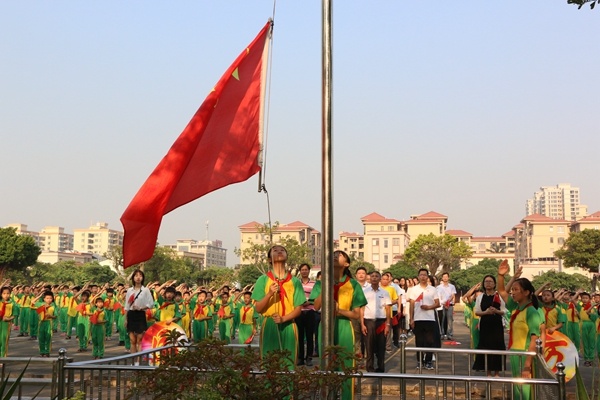 然后由莫文杰校長致辭,莫校長勉勵同學們一定要牢記國家主席習爺爺?shù)膰谕校眯膶W習和踐行24字社會主義核心價值觀,胸懷祖國,勤奮學習,努力掌握現(xiàn)代科學技術,爭做有理想,有道德,有文化,有紀律的四有新人,爭做新時代的好少年,一定要繼承和發(fā)揚自強不息的民族精神,奮力拼搏,力爭用自己的激情、汗水和辛勞,把偉大的祖國建設得更加美好!衷心祝愿我們的祖國更加繁榮昌盛,祝愿全國人民永遠幸福安康!