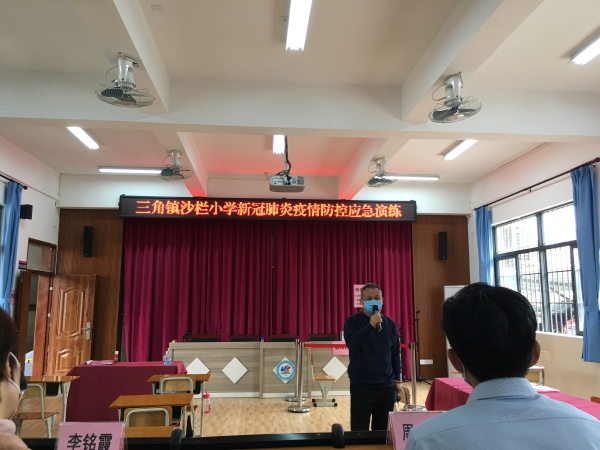 為進(jìn)一步做好新冠肺炎疫情防控期間學(xué)校安全防范工作,提高學(xué)校對(duì)新冠肺炎防控的應(yīng)急處理能力,為學(xué)生返學(xué)提供健康保障,4月25日,沙欄小學(xué)舉行新冠肺炎疫情防控應(yīng)急演練,三角鎮(zhèn)人大主席周定純、鎮(zhèn)黨委委員李銘霞、鎮(zhèn)文體教育局局長(zhǎng)邵麗燕、鎮(zhèn)衛(wèi)計(jì)局局長(zhǎng)何松榜、鎮(zhèn)疾控中心主任鐘向前、鎮(zhèn)教育事務(wù)指導(dǎo)中心主任胡石生及部份教研員、兄弟學(xué)校領(lǐng)導(dǎo)、學(xué)校全體教職工等近80人觀摩了本次演練。