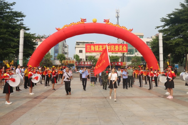 當(dāng)天上午,三角鎮(zhèn)文化廣場(chǎng)外,各個(gè)參加歡送新兵的村(居)委會(huì)鑼鼓敲響,醒獅隊(duì)伍舞動(dòng)起來(lái),熱鬧非凡。三角小學(xué)少先隊(duì)鼓號(hào)隊(duì)隊(duì)員們,服裝統(tǒng)一,精神抖擻,英姿颯爽的站于拱門兩側(cè)。各村(居)新兵及家屬方陣依次進(jìn)場(chǎng),訓(xùn)練有素的鼓號(hào)隊(duì)隊(duì)員立即奏響了振奮人心的樂(lè)曲。汗水不斷潤(rùn)濕了臉頰,隊(duì)員們?nèi)匀槐3终R劃一的動(dòng)作,以最好的姿態(tài)代表三角小學(xué)全體師生,給每位入伍軍人送上最真摯的祝福。接著,在歡送儀式上,21名少先隊(duì)員依次為21位新兵,向他們行少先隊(duì)隊(duì)禮并戴上紅綬帶并為21名新兵父母獻(xiàn)鮮花。最后鼓號(hào)齊奏,歡送新兵們踏上那光榮的征途,在鼓號(hào)聲中向新兵們致敬。
