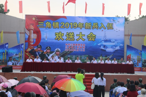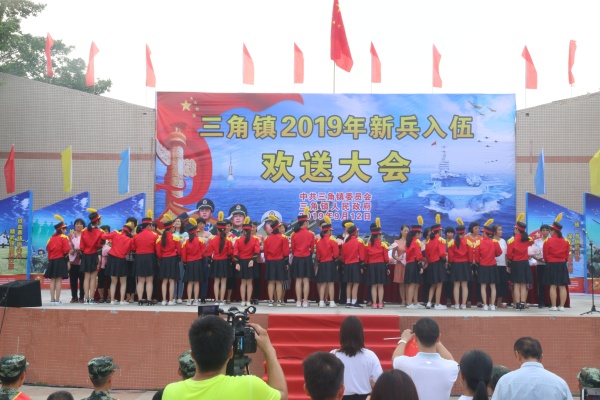 三角小學(xué)少先隊(duì)鼓號(hào)隊(duì)在主持學(xué)校全面工作的陳見(jiàn)洪副校長(zhǎng)、王輝副校長(zhǎng)、霍廣耀主任、許嘉天、吳同科、吳麗瓊、周嘉欣、綦鑫等老師的帶領(lǐng)下,組織了一支由70名學(xué)生組成的隊(duì)伍參加了此次新兵入伍歡送儀式。