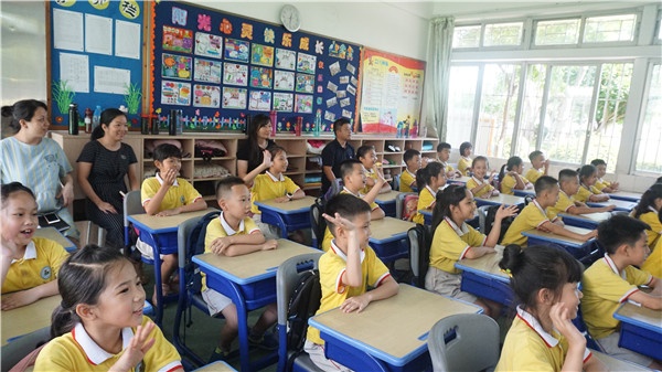 隨后,調(diào)研組分三批分別進(jìn)入低、中、高課堂,隨機(jī)聽(tīng)取了以“情緒管理”為主題的三堂心理健康教育活動(dòng)課。課堂上,三位老師情緒飽滿、笑臉盈盈的講課,以貼近學(xué)生年齡段的課堂游戲營(yíng)造了輕松、和諧、快樂(lè)的課堂,并通過(guò)精心剪輯的視頻內(nèi)容、情景劇創(chuàng)設(shè)情境,幫助學(xué)生積極融入課堂,在活動(dòng)中體驗(yàn)和感悟情緒的變化和管理。