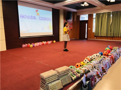 活動一開始,大隊輔導員鐘海燕老師用熱情洋溢的講話向同學們說明了此次活動的目的和意義,希望同學們在黨和政府、在省紅領巾基金的關愛下努力學習,將來做個對社會、對國家有貢獻的人。小主持陳寶誼大隊長組織大家玩起了熱身游戲《擊鼓傳球》,拉近了不同年級學生間的距離,大家開始活躍起來,隨著鼓聲動作利索地傳球,生怕接到球要表演節(jié)目。緊接著,還玩了“我說你猜”、“誰是臥底”小游戲,不但展示了學生自己的反應力和模仿能力,還給大家?guī)砹藲g笑。最后幸運大抽獎環(huán)節(jié),不管自己抽中的是什么,大伙都欣然接受,知道這是紅領巾基金會對自己的一份關愛和心意,心里充滿的是喜悅和感激。在活動結束之前,德育主任謝萬明主任和大隊輔導員鐘海燕老師一起,為“小候鳥”們頒發(fā)了精美、實用的文具獎品,有中國象棋、小足球、魔方、書袋、水瓶、文件袋、筆記本、筆等,同學們個個喜笑顏開、愛不釋手。