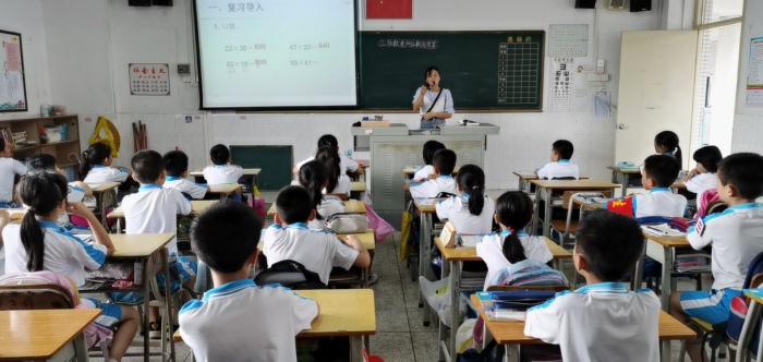 9 月 15 日,新教師黃雅任執(zhí)教的《三位數(shù)乘兩位數(shù)》,展示出老師對(duì)線上資源的合理應(yīng)用和扎實(shí)的專業(yè)水平,同時(shí)也能注重學(xué)生“三大一完整”語(yǔ)言表達(dá)能力的培養(yǎng)。