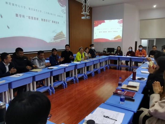 課后,三位上課老師跟大家分享了他們的教學(xué)設(shè)計(jì)和教學(xué)反思,每所學(xué)校派出兩位教師代表進(jìn)行評(píng)課。大家都各抒己見,肯定了上課老師的優(yōu)點(diǎn)并且給出寶貴的建議。最后,大布小學(xué)的曾鵬主任、雍陌小學(xué)的王建林副校長(zhǎng)和神灣中心小學(xué)梁副校長(zhǎng)對(duì)這次活動(dòng)進(jìn)行了總結(jié)。提出年輕人要多磨煉、多學(xué)習(xí)、多請(qǐng)教,為數(shù)學(xué)學(xué)科注入一股新鮮有活力血液的期望。最后,四所學(xué)校老師合影留念,建立下兄弟學(xué)校間的友誼。