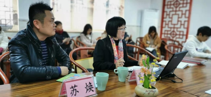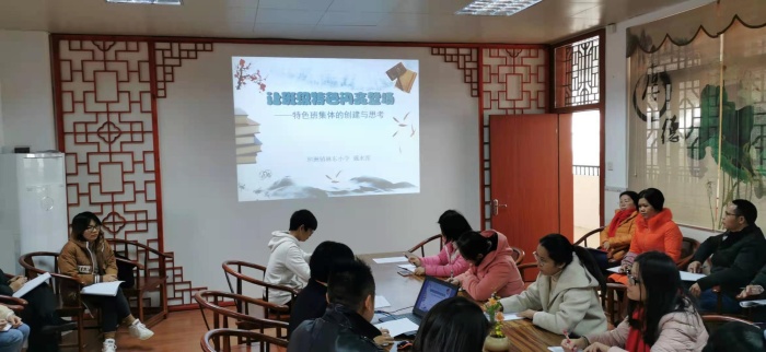 之后,新圩小學(xué)的朱華春副校長結(jié)合當(dāng)前背景下班級特色建設(shè)問題進行了深入剖析,就“如何創(chuàng)建有特色的班集體”,解讀了班級特色創(chuàng)建的理念、思想、途徑和方式。從班級管理到班級建設(shè)的觀念轉(zhuǎn)變呼吁全體班主任要提升專業(yè)性發(fā)展能力,主動建設(shè)班級,以班級文化引領(lǐng)班級發(fā)展,最后還為班主任進行特色班級建設(shè)提供了各種思路,比如:經(jīng)典引路、童話引路、寓言引路、讓美文為青春導(dǎo)航目和吟誦美文等。