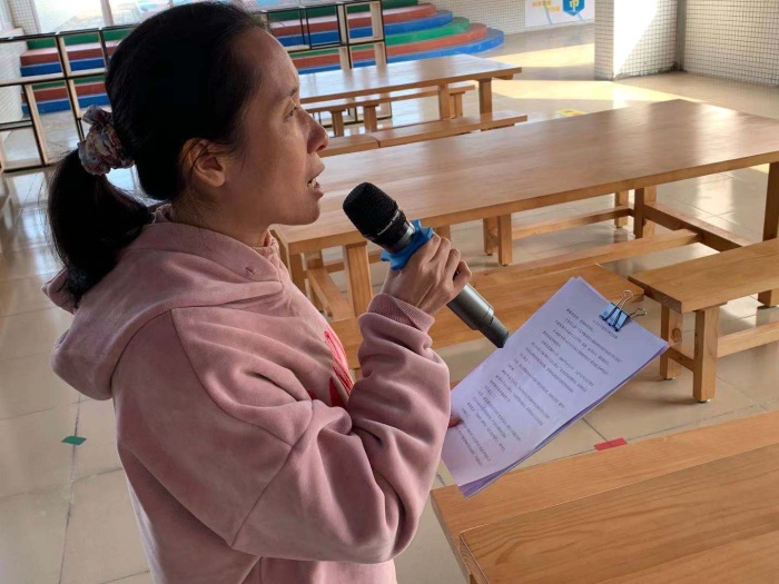 會(huì)議伊始,全校齊唱《憲法伴我們成長(zhǎng)》歌曲,歌聲悠揚(yáng),飄蕩在校園中,令人振奮。隨后,全體師生共同觀看了“憲法晨讀”活動(dòng)。