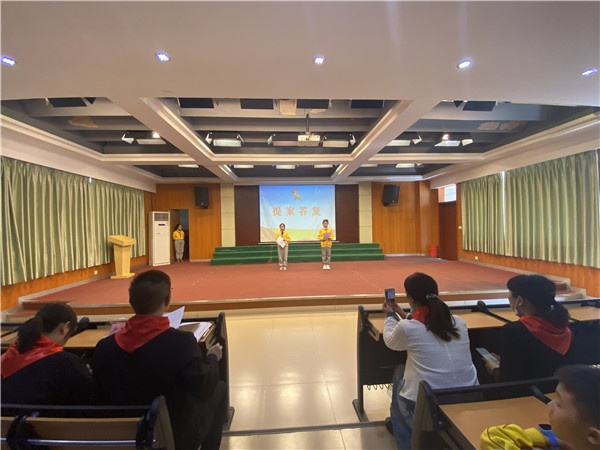接著進(jìn)行大會(huì)議程,少先隊(duì)員熱門(mén)提案的現(xiàn)場(chǎng)答復(fù)環(huán)節(jié)。大隊(duì)輔導(dǎo)員將收集到的提案一一匯總,包括了后勤、學(xué)生發(fā)展、活動(dòng)舉行等各個(gè)方面。其中8個(gè)小提案的答復(fù),關(guān)乎到隊(duì)員的興趣與愛(ài)好,更是引發(fā)了全場(chǎng)的共鳴,將本次的大會(huì)推向了高潮。 隨后主持人宣布了新一屆大隊(duì)委組織架構(gòu)、學(xué)校少工委組織架構(gòu)。最后由謝萬(wàn)明主任致閉幕詞,全體隊(duì)員呼號(hào)、退隊(duì)旗。