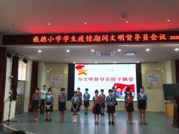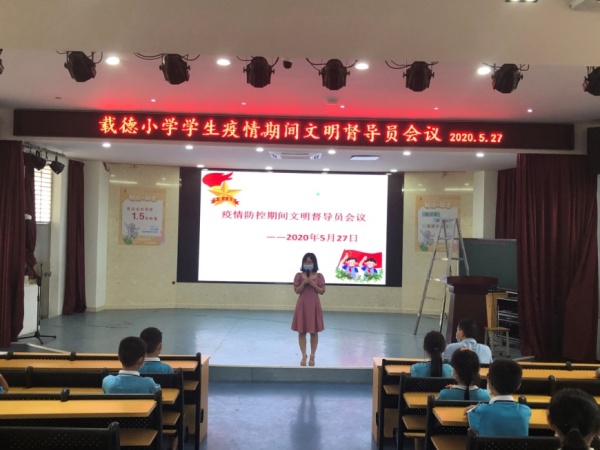 為加強學校疫情防控,確保孩子們身體健康,充分發(fā)揮少先隊干部在學校的管理作用,營造安全、文明的校園氣氛,三鄉(xiāng)鎮(zhèn)載德小學于5月27日開展疫情期間文明督導員會議。