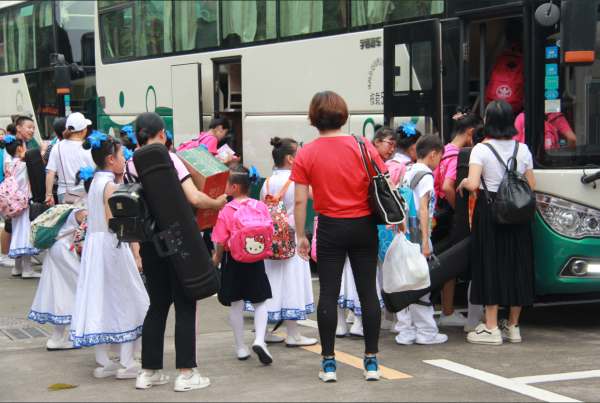 回顧往昔,早在2019年4月28日,36名弓弦樂團(tuán)的孩子們邁著小腳丫,來到中山市東鳳鎮(zhèn)安樂小學(xué),就進(jìn)行了一次安樂小學(xué)行。四月的安樂小學(xué)校園,到處綠意盎然,處處可見孩子們天真的笑臉。兩校的100多名孩子進(jìn)行了《弓弦情 民族魂》交流演出。森林娃們高超的演繹水準(zhǔn)博得掌聲陣陣。精彩的演奏彰顯了森林娃對(duì)民族藝術(shù)的傳承和弘揚(yáng)。在交友環(huán)節(jié)中,森林娃們主動(dòng)、熱情,落落大方,贏得了安樂小學(xué)師生的稱道。除此之外,在更早之前的2017年,平嵐小學(xué)藝術(shù)游學(xué)團(tuán)也已經(jīng)名聲在外啦!2017年,藝術(shù)游學(xué)團(tuán)的廣州-東莞-深圳巡回游學(xué)產(chǎn)生了廣泛的影響。