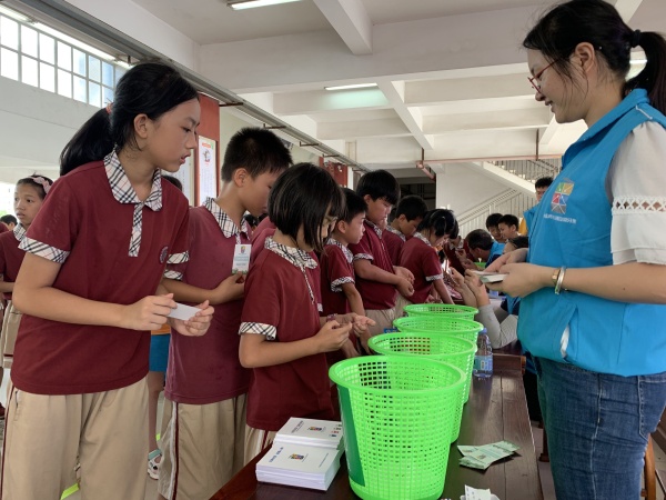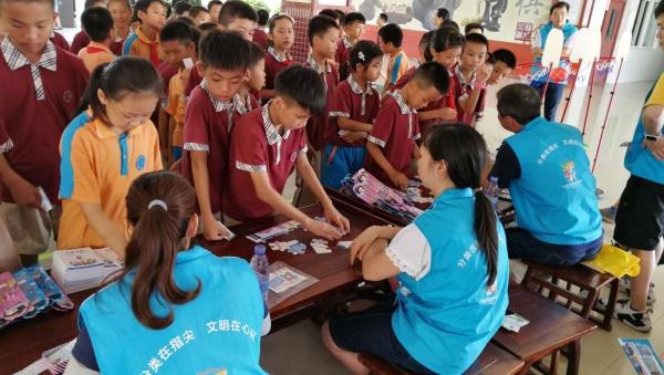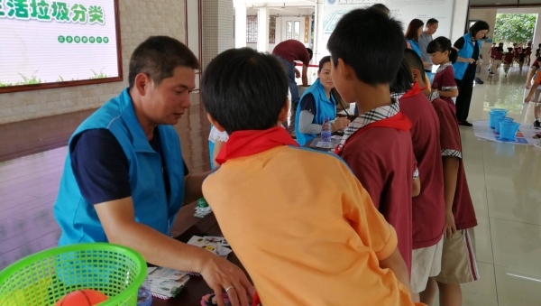 2019年6月21日下午,新圩小學(xué)開展了以“愛護(hù)環(huán)境,保護(hù)地球”垃圾分類進(jìn)課堂教育游園活動(dòng)。本次活動(dòng)參加的對(duì)象是三年級(jí)的全體學(xué)生,主要分兩大部分進(jìn)行。第一部分是在階梯室聽垃圾分類知識(shí)教育講座,第二部分是集中篤行堂進(jìn)行有獎(jiǎng)問答游戲活動(dòng)。
