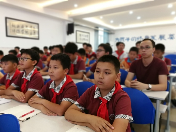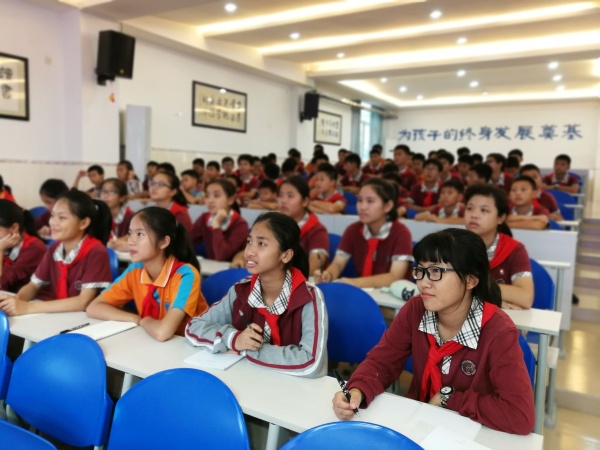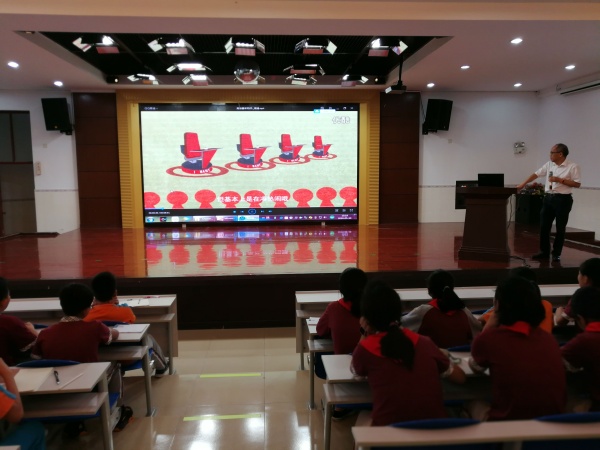 熊律師通過尊崇憲法、學(xué)習(xí)憲法、案例析法、誦讀憲法四個環(huán)節(jié),給孩子們上了一節(jié)生動有趣的憲法大課堂。首先,通過《認(rèn)識憲法》這個視頻,讓學(xué)生了解憲法,認(rèn)識憲法,還知道了憲法對于人民有哪些保障。接著通過案例分析,讓同學(xué)們體會到:法律就在身邊,法律值得大家尊崇。熊律師還舉行PK賽,就憲法的相關(guān)知識提出了一系列的問題,同學(xué)們積極搶答。此外,還進(jìn)行了憲法必會知識小測驗(yàn)活動,讓憲法知識深入到學(xué)生心中;最后,熊律師帶動全體學(xué)生一起誦讀憲法,憲法之聲在階梯教室里回響。