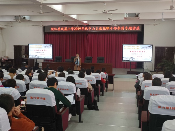李莉老師是在我國東西部扶貧協(xié)作教育幫扶大政策下,由中山市東區(qū)組團派到綏江縣的教育扶貧掛職干部,來自三鄉(xiāng)鎮(zhèn)雍陌小學,將在鳳凰小學支教一年。8月30日,李老師根據(jù)組織安排來到鳳凰小學。經(jīng)過一個月的深入課堂了解,她發(fā)現(xiàn)隨著2019年全國統(tǒng)編版教材的統(tǒng)一使用,鳳凰小學語文老師面臨在教材解讀中的許多難題。李老師結合自己的經(jīng)驗,利用兩個多星期再次通讀新版的教材,查閱了大量資料,于10月22日下午在學校開展了一次主題為“統(tǒng)編教材的變化”的專題講座。