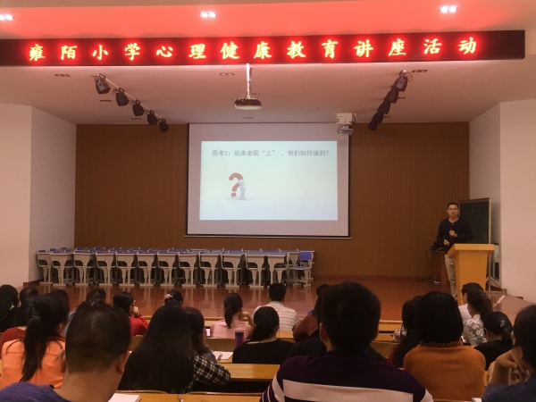 為了深入貫徹《國家中長期教育改革和發(fā)展規(guī)劃綱要》和教育部《中小學心理健康教育指導綱要》精神,提升教師利用心理學知識教育學生的能力,4月15日下午,雍陌小學邀請紀念中學的張均華老師給全體教師做以《后來者,如何居上》為主題的心理健康教育講座。