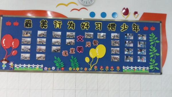 根據(jù)方案中各年級不同的要求,各班主任平時要注意觀察孩子們好的行為習(xí)慣,還要與家長做好溝通工作,以拍照的形式,一起捕捉學(xué)生平時最美的行為。并把這些學(xué)生最美行為的照片以板報的形式展出,以此促進孩子們明確年級目標(biāo)、落實良好行為、培育美德少年。