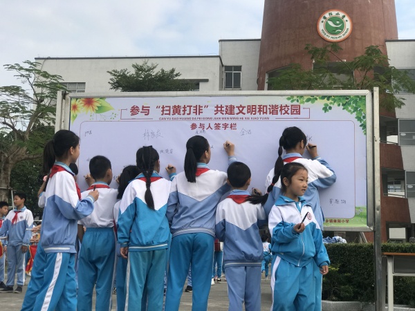 為進(jìn)一步增強(qiáng)學(xué)生的法制意識(shí),提高學(xué)生對(duì)書物的辨別和選擇能力,遠(yuǎn)離和抵制有害出版物,讓“掃黃打非”活動(dòng)深入學(xué)生心中,堅(jiān)決抵制不良書刊進(jìn)校園、進(jìn)家庭,凈化我們的生活環(huán)境,確保我們健康成長(zhǎng)。結(jié)合上級(jí)文件要求,12月3日上午,雍陌小學(xué)開(kāi)展“參與掃黃打非,共建文明和諧校園”承諾簽名活動(dòng)。