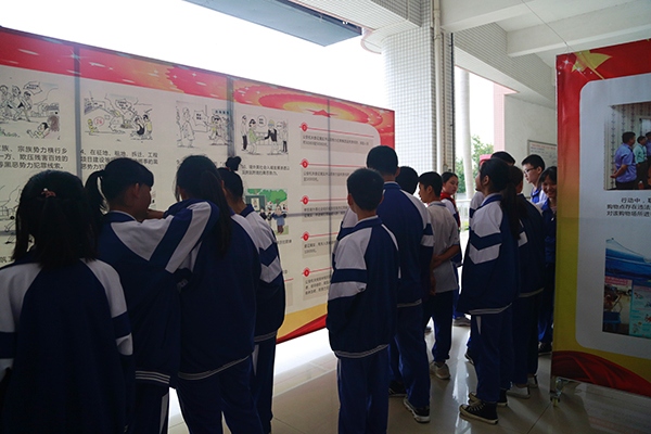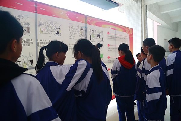 為繼續(xù)深入推進(jìn)“掃黑除惡”專項(xiàng)斗爭, 12月26日,三鄉(xiāng)鎮(zhèn)博愛中學(xué)在學(xué)校大堂設(shè)置了“掃黑除惡”宣傳展板,該展板位置、設(shè)計(jì)、尺寸顯眼,方便全校師生們更加全面、更加深入地了解非法黑惡勢力。展板的內(nèi)容從“黑”“惡”的定義、范圍開始介紹,再到掃黑除惡的意義、途徑,圖文結(jié)合,清晰明了。學(xué)生們利用課余時(shí)間對展板進(jìn)行認(rèn)真觀看,確保每名學(xué)生都能培養(yǎng)掃黑除惡意識,熟知掃黑除惡的途徑。