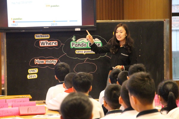 上午小學(xué)的培訓(xùn)活動(dòng)由三鑫小學(xué)部自主實(shí)驗(yàn)部歐陽(yáng)志華主任主持,小學(xué)部李春華老師與三鑫六年級(jí)21班的同學(xué)共同帶來(lái)一節(jié)六年級(jí)英語(yǔ)閱讀展示課《Feeling Excited》。李老師的課圍繞熊貓數(shù)量在中國(guó)的演變,聯(lián)系到野生動(dòng)物保護(hù)的話題,內(nèi)容準(zhǔn)備充分,課堂生動(dòng)有趣。