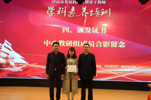 為提高中山市初中、小學(xué)英語(yǔ)科組長(zhǎng)暨骨干教師的專業(yè)素養(yǎng)和學(xué)術(shù)領(lǐng)導(dǎo)力,加強(qiáng)英語(yǔ)學(xué)科建設(shè),促進(jìn)教師專業(yè)成長(zhǎng),由市教育教學(xué)研究室主辦,紀(jì)中三鑫雙語(yǔ)學(xué)校承辦的“中山市初中、小學(xué)英語(yǔ)科組長(zhǎng)暨骨干教師學(xué)科素養(yǎng)培訓(xùn)活動(dòng)”3月7日在三鑫報(bào)告廳成功舉行。