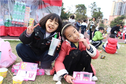 每個人臉上都洋溢著開心幸福的笑容,廣播里播放著歡快的歌曲,早已選購好心儀物品的小伙伴們圍坐在操場上相互分享,或是奔跑著放風(fēng)箏,或是擺弄起自己的小動物,整個活動操場上空都飄滿了孩子們歡樂的笑聲,處處洋溢著迎春嘉年華的火熱歡樂。
