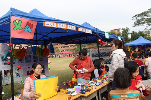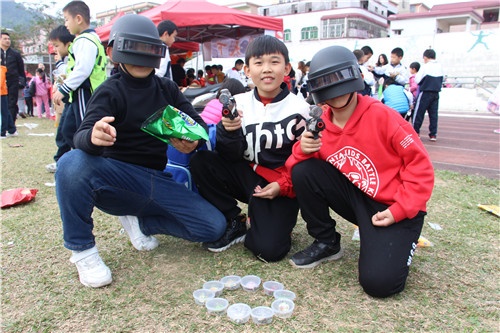 “哈哈,我們是烏龜者聯(lián)盟!”、“他放風(fēng)箏好好玩呀,我也要去買一個來放”、“哈哈哈,看我的三級頭盔“……1月21日,正在田徑場如火如荼進(jìn)行的是2019年中山市紀(jì)中三鑫雙語學(xué)?!皣仪嗌倌牦w育俱樂部”小學(xué)部嘉年華活動,數(shù)十個攤位種類多樣,各具特色。運(yùn)動場上熱火朝天,人聲鼎沸。
