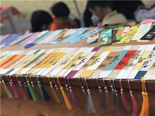 “小食代”攤位前擠滿了小朋友,拿著冬令營期間用自己優(yōu)秀表現(xiàn)換來的“淘金幣”,吃到零食的小朋友滿足地贊嘆“太好吃了!”。“老師,這朵花多好錢呀?”“愛之屋”攤位也迎來了很多小顧客,這里的手工花、多肉等等多種多樣,價格便宜,所賣收入也全部作為公益基金,得到了不少愛心小顧客的熱捧!春聯(lián)攤位前圍起了一圈一圈的隊(duì)伍,上前一看原來是三鑫的老師和學(xué)生們正親自為大家創(chuàng)作和書寫新春“?!薄@蠋熢趥浜玫募t紙上揮灑自如,“福”也成為大家口中嘖嘖稱贊的“搶手貨”。還有很多學(xué)生們自制的書簽、紅繩等,受到小顧客們極大的歡迎!