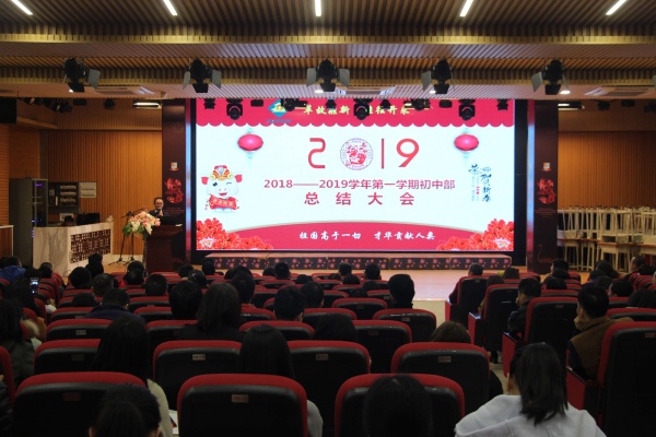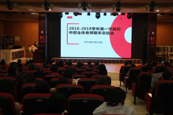 1月16日下午,經(jīng)過一個學期的忙碌,紀中三鑫雙語學校初中部2018——2019第一學期總結(jié)大會在學校報告廳如期舉行。會議由初一年級校長黃建軍主持,初中部全體管理人員和老師參與了本次會議。