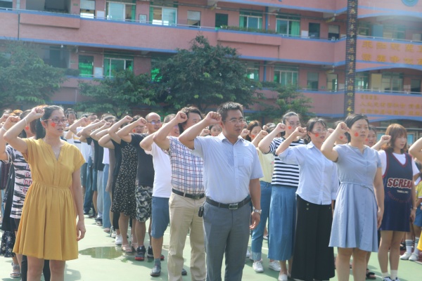 最后,全體學(xué)生和教師分別宣誓,表達(dá)了熱愛祖國(guó)、堅(jiān)定前行的決心。