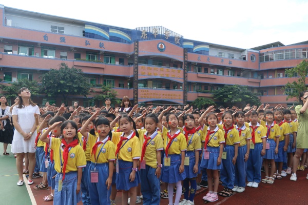 徐文校長(zhǎng)深情地叮嚀學(xué)生們:“孩子們,無論你們走到哪里,你們都應(yīng)該銘記,有中國(guó)人的地方就有五星紅旗,我們每一個(gè)人都是護(hù)旗手,我們都有責(zé)任讓五星紅旗更鮮艷,讓五星紅旗飄得更高,揚(yáng)得更遠(yuǎn)!為國(guó)旗添光彩就是做最好的自己,即使在每個(gè)普通的日子里,每個(gè)人每天進(jìn)步一點(diǎn)點(diǎn),平凡的努力也能成就不平凡的自己、成就不平凡的中國(guó)。心里有愛,執(zhí)著前行,就能讓五星紅旗綻放出最美的光芒!”