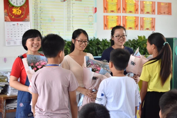 體驗活動結束后,班主任巫慧珍老師、語文張藝老師、德育處熊鈞俊主任為各位“小小老師”進行了點評并頒獎。最后,三位社工還為孩子們準備了鮮花送給自己親愛的老師。