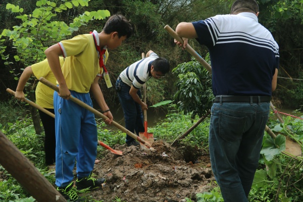 隨后, 徐文校長(zhǎng)帶領(lǐng)德育處熊鈞俊主任、陳大彪主任、教導(dǎo)處徐群主任、王輝主任、辦公室陳媛媛主任等來(lái)到校園畢業(yè)紀(jì)念林所在,分別與本屆六年級(jí)的六個(gè)班級(jí)師生們一起種樹(shù)、填土、澆水。畢業(yè)生們個(gè)個(gè)干勁十足、熱情高漲。他們?cè)诶蠋煹闹笇?dǎo)下,親自種下荔枝、龍眼、嘉寶果等果樹(shù),然后爭(zhēng)相合影留念。同學(xué)們帶著濃濃的感恩情把根深植在母校中,相信這種對(duì)母校的眷戀和熱愛(ài)、以及深厚的師生情誼,將洋溢在東華校園的每一個(gè)角落!
