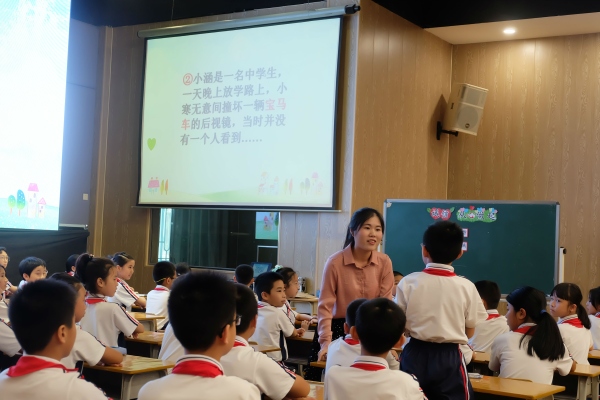 其中,四至六年級(jí)的課例比賽則是圍繞社會(huì)主義核心價(jià)值觀關(guān)于公民個(gè)人層面的價(jià)值準(zhǔn)則“誠(chéng)信”展開(kāi)。4月25日,學(xué)校承辦了班會(huì)課比賽的最后一場(chǎng),由來(lái)自不同市鎮(zhèn)學(xué)校的6位老師展示了6個(gè)課例。課例選題精準(zhǔn),設(shè)計(jì)新穎,內(nèi)容豐富充實(shí),活動(dòng)形式多樣,圍繞學(xué)生的生活學(xué)習(xí)實(shí)際提出問(wèn)題,引發(fā)思考,展開(kāi)討論,觸動(dòng)心靈,全員參與,重點(diǎn)突出,從認(rèn)知、感悟、踐行三個(gè)方面構(gòu)建了學(xué)生知行合一的班會(huì)活動(dòng)模式,獲得了評(píng)委專家、老師們的一致好評(píng)。