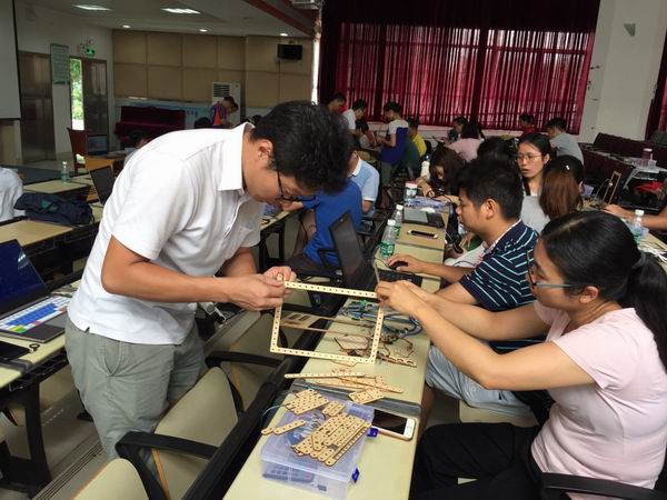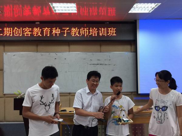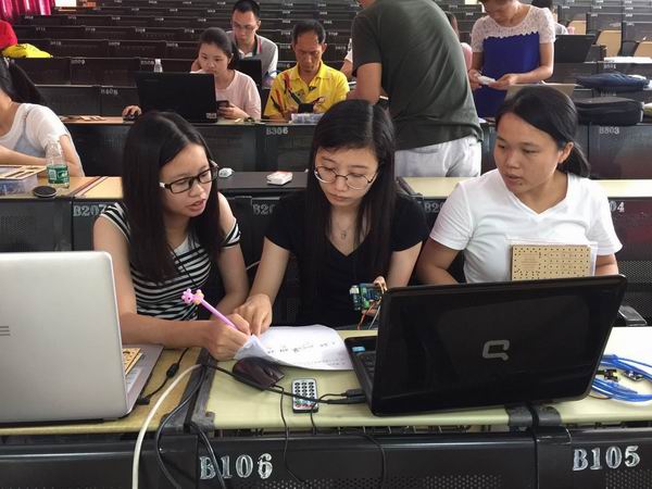 為提高區(qū)中小學開展創(chuàng)客教育的實施能力,培養(yǎng)優(yōu)秀創(chuàng)客教育教師,進一步推進創(chuàng)客教育在全區(qū)中小學的普及與開展,順德區(qū)教育發(fā)展中心舉辦了第二期創(chuàng)客教育種子教師培訓(xùn),分別于7月4、5日和10、11日在大良順峰中學和勒流職業(yè)技術(shù)學校開班,全區(qū)共有200多名中小學教師前來參與。培訓(xùn)的主要內(nèi)容是開源硬件和米思齊基礎(chǔ)入門。