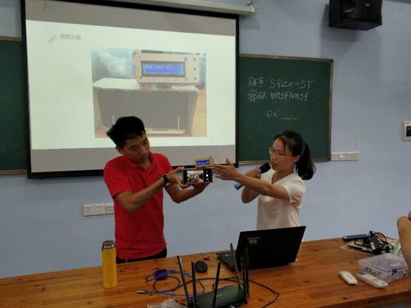 經(jīng)過一天的基礎(chǔ)知識學習,第二天下午,分小組進行項目制作和路演匯報。各個小組的老師都使出渾身解數(shù),把兩天培訓(xùn)中所學到的技術(shù)以及團隊的創(chuàng)意發(fā)揮得淋漓盡致,在硬件有限的條件下實現(xiàn)各種有創(chuàng)意的創(chuàng)客作品,路演匯報環(huán)節(jié)精彩紛呈,充分展示了我區(qū)在創(chuàng)客教育的師資潛力。