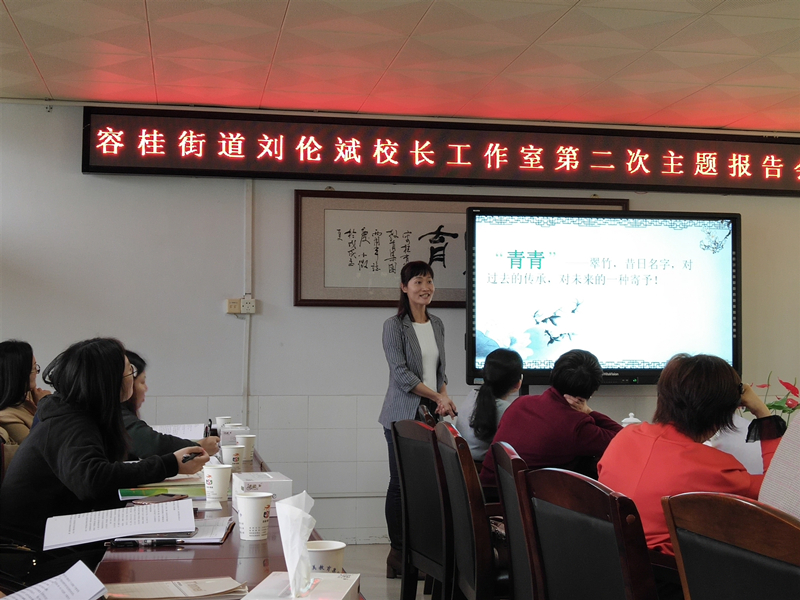 會議中,我校彭秀碧校長作為該工作室的指導(dǎo)校長代表,為全體參會成員作《淺析校園文化調(diào)查報告寫作方法》的報告分享,將理論與實踐結(jié)合,給予參會成員有效指導(dǎo)。