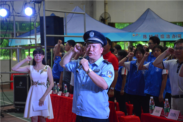 陳村鎮(zhèn)黨委委員、陳村派出所所長(zhǎng)劉劍飛,陳村鎮(zhèn)綜治辦常務(wù)副主任龔永健,陳村鎮(zhèn)禁毒協(xié)會(huì)會(huì)長(zhǎng)單位、廣東永通起重機(jī)械股份有限公司董事長(zhǎng)葉宏洪,陳村職校副校長(zhǎng)司徒葵東,陳村鎮(zhèn)各職能部門(mén)代表以及陳村職校智能制造學(xué)部全體學(xué)生等1000余人參加了本次活動(dòng)。