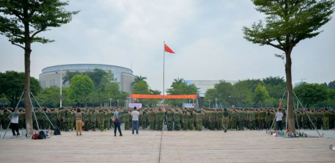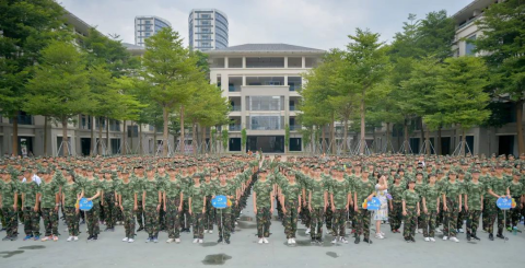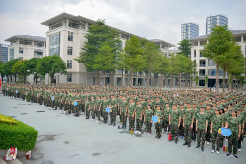 2019年8月25日上午7點(diǎn),學(xué)校升旗臺(tái)前,一個(gè)個(gè)身穿迷彩的身影匯聚成校園里最矚目的一道風(fēng)景:順德一中2019級(jí)900多">