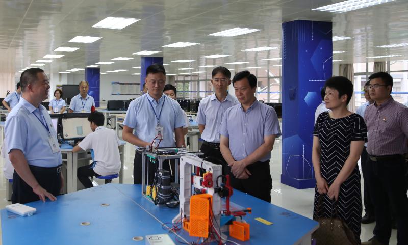 在勒流街道黨工委委員、教育局局長(zhǎng)林程、學(xué)校校級(jí)行政班子成員陪同下,一行人首先參觀了學(xué)校3D打印與雙創(chuàng)公共實(shí)訓(xùn)中心。
