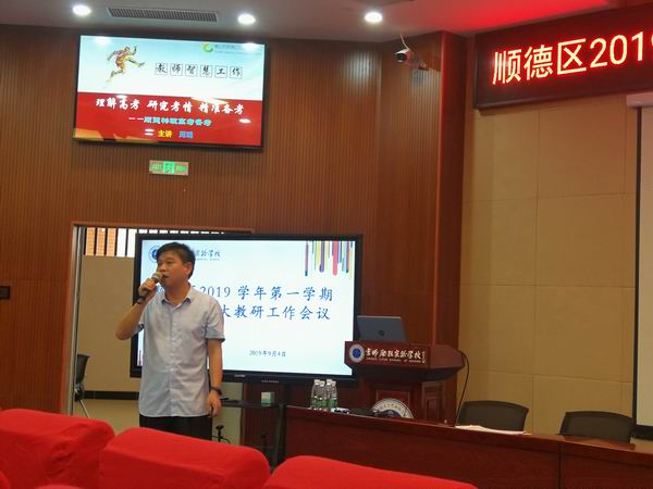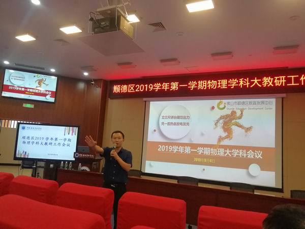 9月4日,區(qū)教育發(fā)展中心在順德京師勵耘實驗學校召開了物理學科大教研工作會議,總結(jié)2018學年物理學科大教研工作,研討并部署新學期創(chuàng)新教研模式。參會人員有鎮(zhèn)(街道)初中物理中心教研組長,區(qū)屬初中學校物理科組長,普通高中物理科組長及各年級備等近100人。會議由發(fā)展中心物理教研員周璐老師主持。