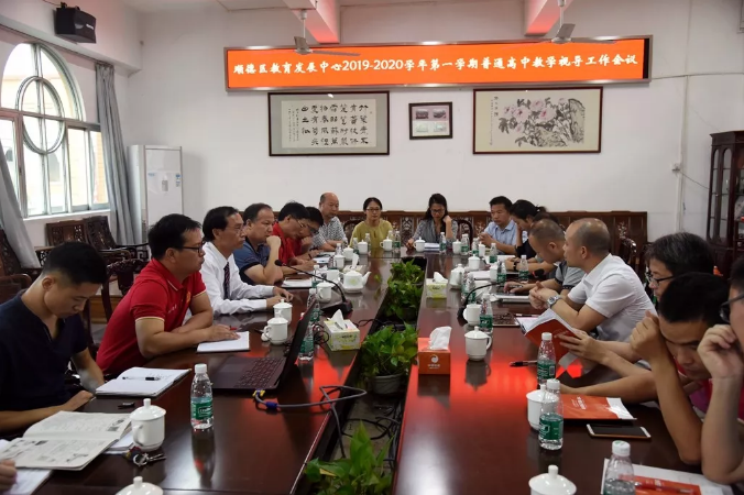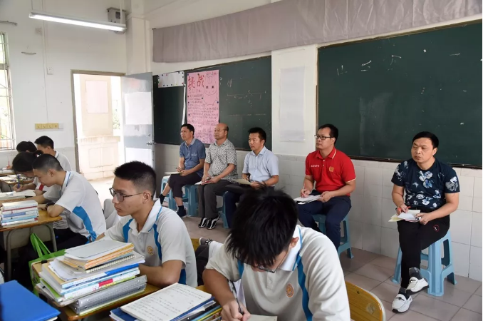 2019年10月24日下午,順德區(qū)教育發(fā)展中心教研室主任、歷史學(xué)科教研員余逸帶領(lǐng)化學(xué)學(xué)科教研員潘紅老師、地理學(xué)科教研員吳俊和老師、數(shù)學(xué)學(xué)科教研員王常斌老師、生物學(xué)科教研員唐創(chuàng)強(qiáng)老師、政治學(xué)科教研員薛國(guó)雄老師、英語(yǔ)學(xué)科教研員許莎莎老師、語(yǔ)文學(xué)科教研員謝植宣老師一行8人,對(duì)順德華僑中學(xué)教學(xué)和高三備考工作進(jìn)行了全方位的視導(dǎo)檢查。順德華僑中學(xué)吳劍平校長(zhǎng)、黨總支羅來(lái)綱副書(shū)記、教學(xué)科研處潘錦江主任及學(xué)校相關(guān)學(xué)科科長(zhǎng)和備課組長(zhǎng)等全程陪同。