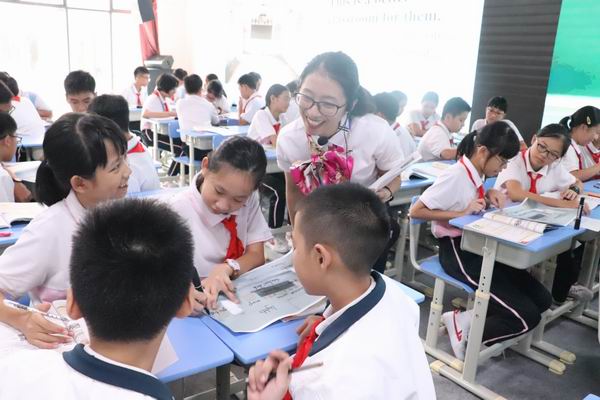 下午兩點半,伴隨著七年級8班同學的朗朗書聲,課例分享活動正式開始。成美初級中學楊麗英老師給大家?guī)砹?/span>Module 3 My School Unit 1 There are thirty students in my class的展示課。楊老師運用成美“三環(huán)五學”模式,逐步展開課堂教學,并在最后運用給山區(qū)孩子重新設(shè)計教室的活動鞏固了課堂知識,受到了與會教師的一致好評。