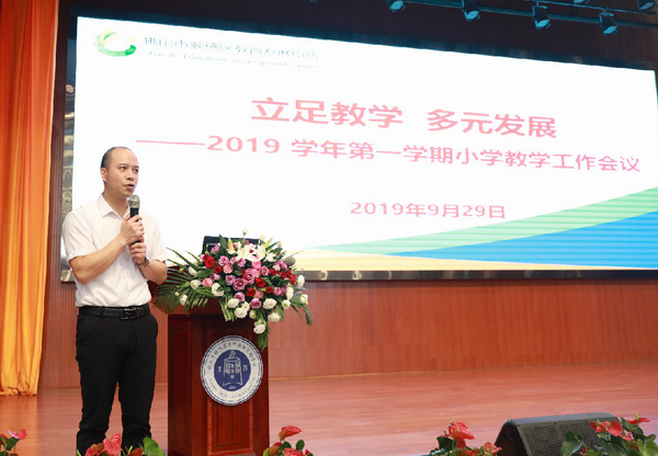 為總結(jié)上學(xué)期小學(xué)教學(xué)工作,增強(qiáng)小學(xué)教學(xué)改革的科學(xué)性和實(shí)效性,進(jìn)一步提升教學(xué)質(zhì)量,促進(jìn)學(xué)校多樣、特色、內(nèi)涵發(fā)展,2019年9月29日,順德區(qū)教育局在京師勵(lì)耘實(shí)驗(yàn)學(xué)校召開(kāi)2019學(xué)年第一學(xué)期小學(xué)教學(xué)工作會(huì)議。區(qū)教育局副局長(zhǎng)、區(qū)教育發(fā)展中心黨總支書記、主任張毅先生,華南師范大學(xué)教育科學(xué)院王世偉教授,區(qū)教育發(fā)展中心教育質(zhì)量監(jiān)測(cè)室和教研室行政及相關(guān)人員,各鎮(zhèn)(街道)教育局教研室小學(xué)負(fù)責(zé)人,各小學(xué)校長(zhǎng)、教學(xué)副校長(zhǎng)共三百多人參加了會(huì)議。區(qū)教育發(fā)展中心教研室主任余逸先生主持了本次會(huì)議。