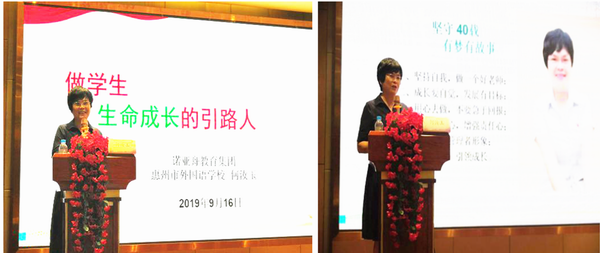 開班儀式結(jié)束后,惠州市外國語學(xué)校校長何汝玉老師帶來了《做學(xué)生生命成長的引路人》專題講座。她通過講述自己的個(gè)人成長以及從教40載中3個(gè)典型的案例:挽救一名自殺的女孩、妥善處理班級(jí)的偷盜事件、校園衛(wèi)生整治工作,向?qū)W員展示了一名德育工作者的情懷,啟迪班主任應(yīng)該用愛喚醒孩子的美好人性。