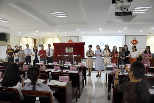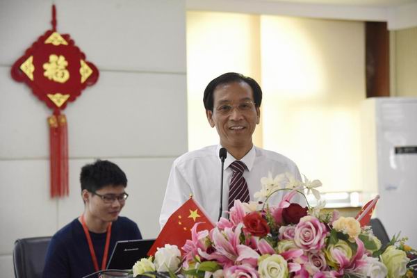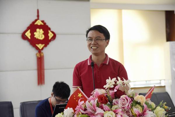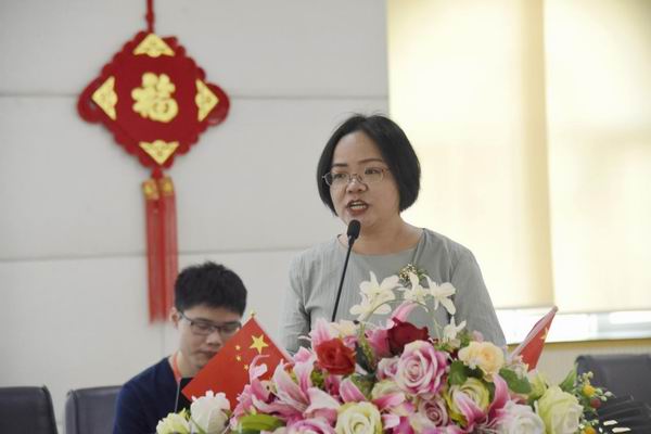 順德華僑中學(xué)黨總支書記吳劍平校長用英語向大家致歡迎辭,對工作室學(xué)員、成員提出了三點(diǎn)希望:明確目標(biāo)、團(tuán)結(jié)一心;把握機(jī)遇、加強(qiáng)學(xué)研;成果豐碩、示范引領(lǐng)。