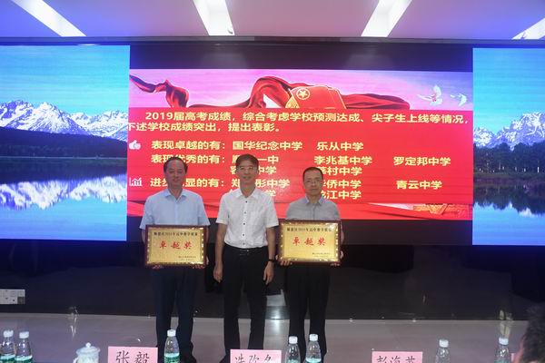 張毅主任為獲得2019年高考卓越獎的學(xué)校頒獎