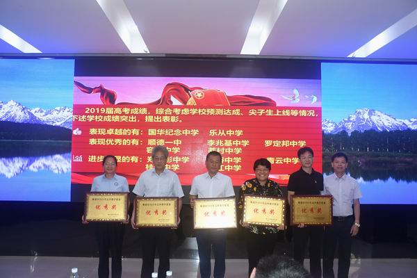 何儀昌副書記為獲得2019年高考優(yōu)秀獎的學(xué)校頒獎