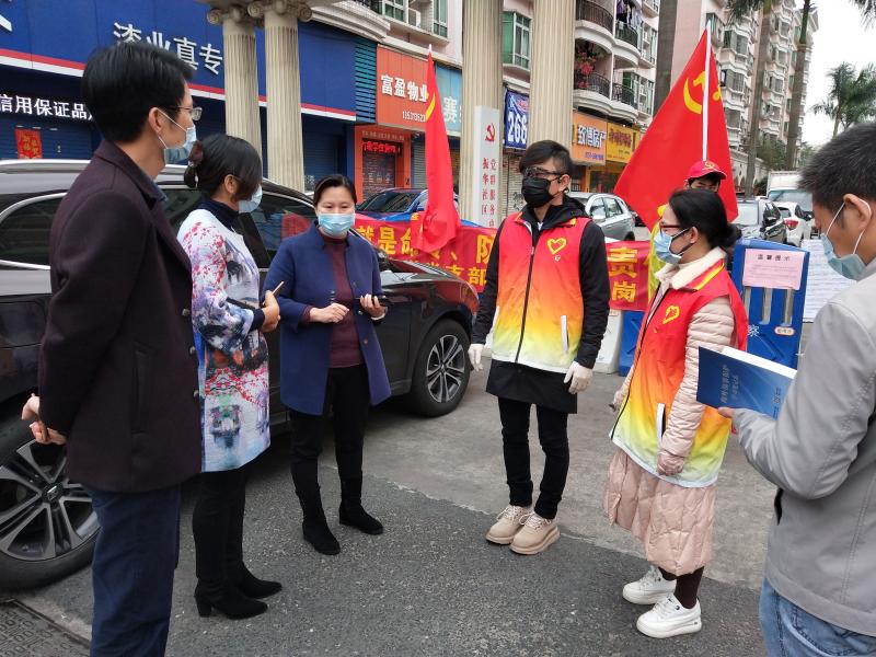為了感謝志愿者們的辛勤值守,了解教師黨員志愿者的工作情況,2月10日上午,順德區(qū)教育局副局長冼彌冬女士,劉進(jìn)華科長以及容桂街道黨工委委員、容桂教育局長歐陽雪喬女士等領(lǐng)導(dǎo)來到容桂康富小區(qū)容桂小學(xué)教師黨員志愿服務(wù)崗,慰問了在門崗值守的學(xué)校教師黨員志愿者和家長義工志愿者。