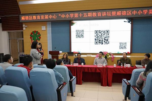 最后,由順德區(qū)美術(shù)教研員王育群老師主持了藝術(shù)教育沙龍研討,楊少弟、陳筆銳等幾位優(yōu)秀美術(shù)老師現(xiàn)場(chǎng)為老師們解疑答惑,分享了自己的教育智慧。