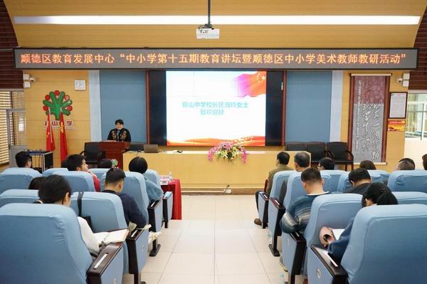 2019年12月27日下午,容山中學(xué)集賢樓報(bào)告廳濟(jì)濟(jì)一堂,來(lái)自全區(qū)中小學(xué)220多名美術(shù)教師以及區(qū)教育發(fā)展中心教師發(fā)展研究室主任唐信焱、副主任吳海堅(jiān),區(qū)美術(shù)教研員王育群老師齊聚這里,參加了一場(chǎng)別開(kāi)生面的美術(shù)教研活動(dòng)?;顒?dòng)由順德區(qū)教育發(fā)展中心、順德區(qū)名師工作室建設(shè)項(xiàng)目管理辦公室主辦,順德區(qū)容山中學(xué)、順德區(qū)劉磊名師工作室承辦,容山中學(xué)侯柏羽老師擔(dān)任活動(dòng)主持。
