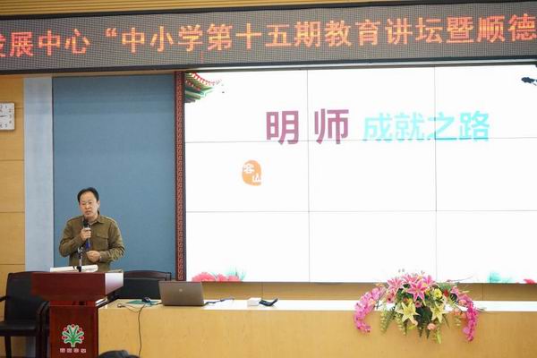 隨后,活動(dòng)的重頭戲,順德區(qū)名師工作室主持人劉磊老師為參訓(xùn)老師進(jìn)行了《核心素養(yǎng)下美術(shù)名師的成長(zhǎng)與擔(dān)當(dāng)》主題報(bào)告。劉磊老師就明師的成就之路,解讀了明師的內(nèi)涵,要賢明,有明確的事業(yè)目標(biāo)和理想追求,做一個(gè)明明白白的好老師,明師是燈塔,照著學(xué)生和你我前行。劉老師根據(jù)自己多年的教學(xué)經(jīng)驗(yàn)侃侃而談,成就一位優(yōu)秀的明師要有忠于內(nèi)心的教育情懷、有體系成熟的教學(xué)風(fēng)格、有教育科研的研發(fā)能力、有急中生智的教學(xué)智慧、有品質(zhì)清白的人格魅力、有淡泊名利的職業(yè)操守、有包容大度的君子涵養(yǎng)幾個(gè)方面。