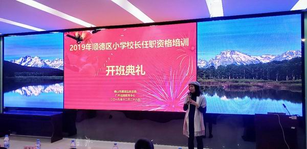 2018 年12月28日上午, 順德區(qū)小學(xué)校長任職資格培訓(xùn)班在順德區(qū)教育發(fā)展中心B座一樓報告廳首次集中培訓(xùn)。廣州遠程教育中心程庭喜教授、順德區(qū)教育局冼彌冬副局長、順德區(qū)教育局組織人事科劉進華科長等領(lǐng)導(dǎo)和嘉賓出席了開班典禮,全區(qū)45名小學(xué)校長參加本次培訓(xùn)。
